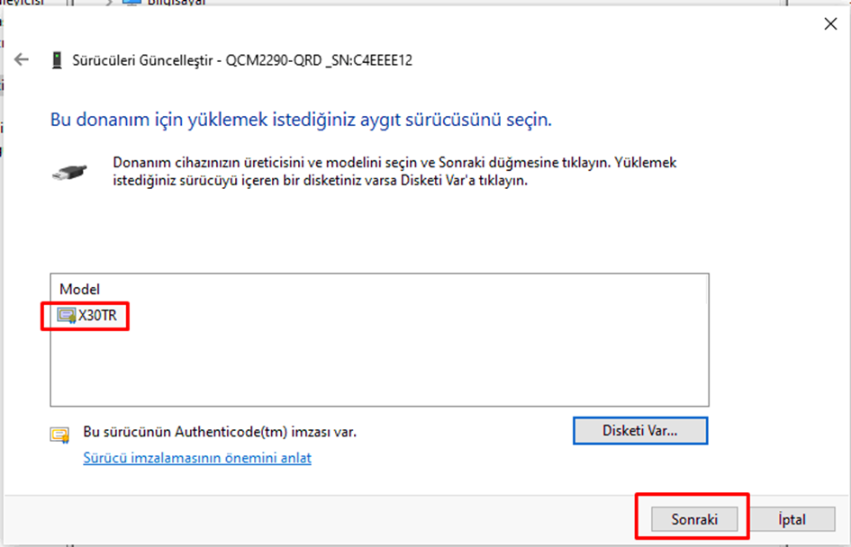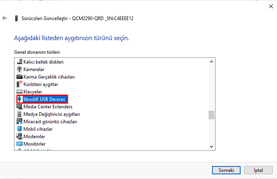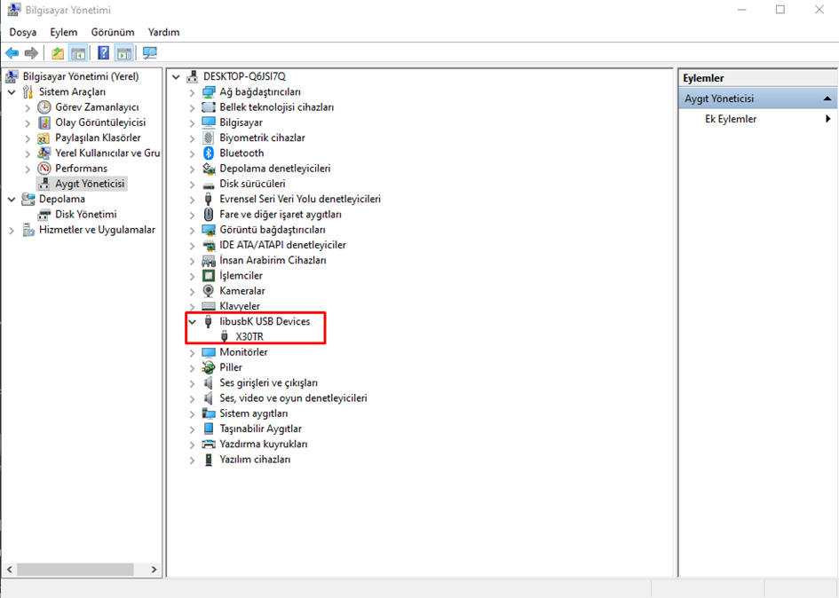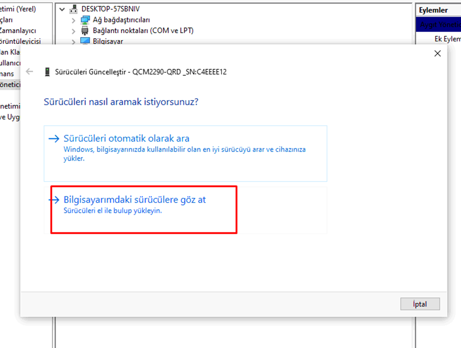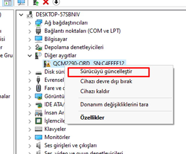 2-aygıt yöneticisini açın ve driver kurulmuş mu kontrol edin